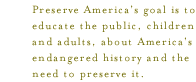 Preserve America intends to collaborate with organizations that create and place educational materials in schools and the public space which will generate excitement for learning more about our nation's history and culture.